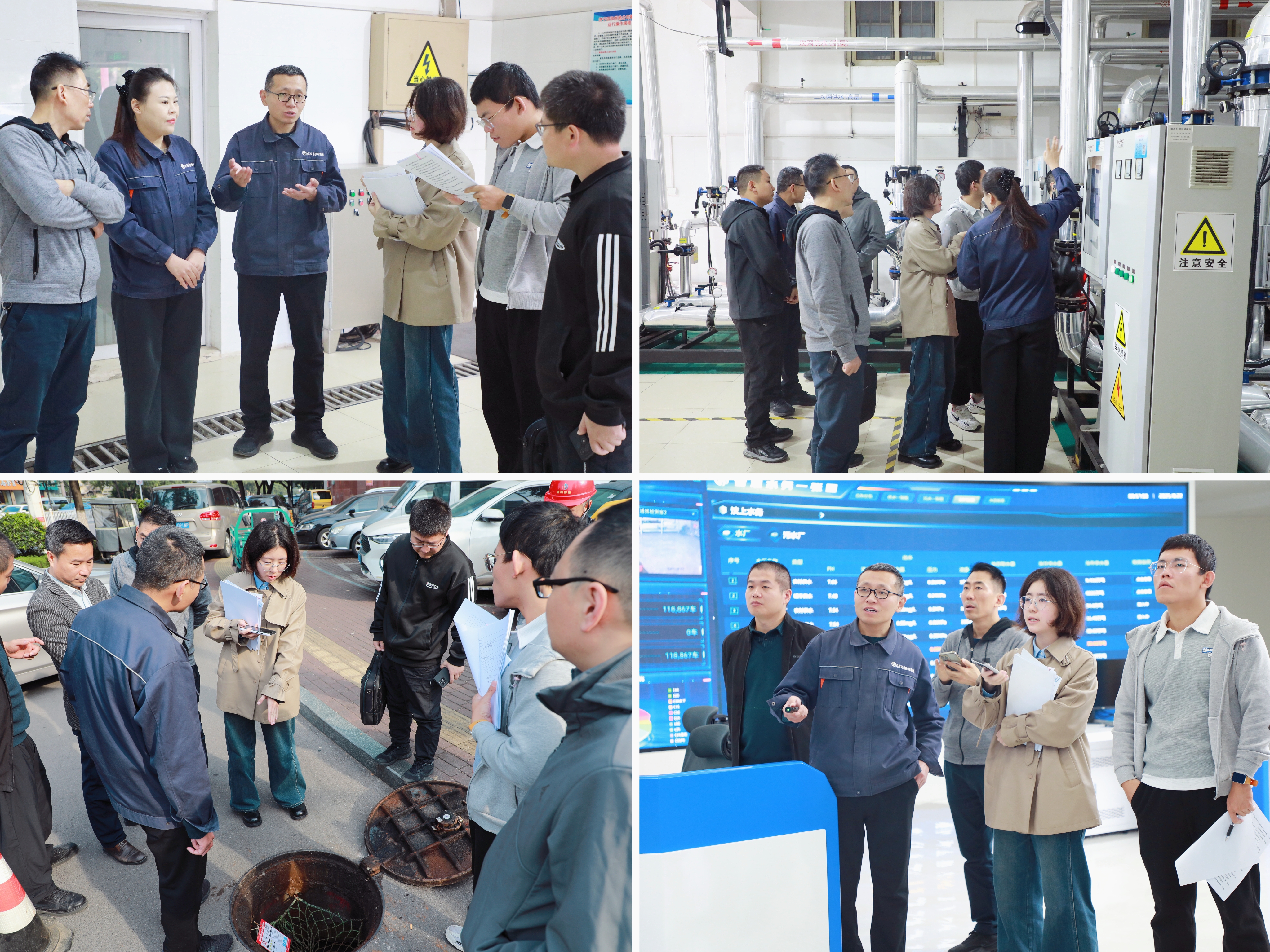 調研組一行首先深入四和供熱公司生產一線,認真了解打壓期間的換熱設備運行狀態(tài)、機組參數(shù)、安全防護措施以及小區(qū)周邊的管網(wǎng)鋪設細節(jié),針對老舊管網(wǎng)更新改造、安全風險隱患排查等關鍵基礎設施建設問題,調研組與相關負責人展開深入交流,逐一核對落實情況。隨后,調研組前往“數(shù)字公用”智慧城市運營中心,重點考察“數(shù)智化”供熱管控平臺的建設與應用成效。工作人員現(xiàn)場演示了系統(tǒng)的實時監(jiān)測、數(shù)據(jù)分析、智能預警和遠程調度功能,通過大屏幕清晰展示了供熱管網(wǎng)的運行狀態(tài)、各區(qū)域供暖溫度、管網(wǎng)壓力變化等數(shù)據(jù)。調研組對系統(tǒng)的智慧化水平給予高度評價并指出,智慧供熱的應用為快速有序處置供熱問題提供了堅實技術支撐,有效提升了供熱基礎設施的安全管控能力,為城市生命線安全工程建設提供了寶貴的實踐經驗。